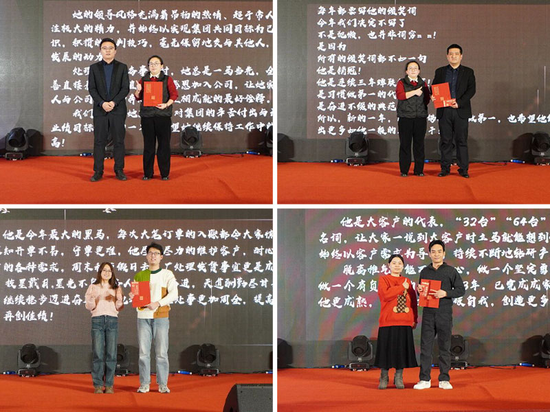 集團(tuán)領(lǐng)導(dǎo)為員工頒發(fā)沖刺獎(jiǎng)、年終獎(jiǎng),紀(jì)念獎(jiǎng)等獎(jiǎng)項(xiàng)。