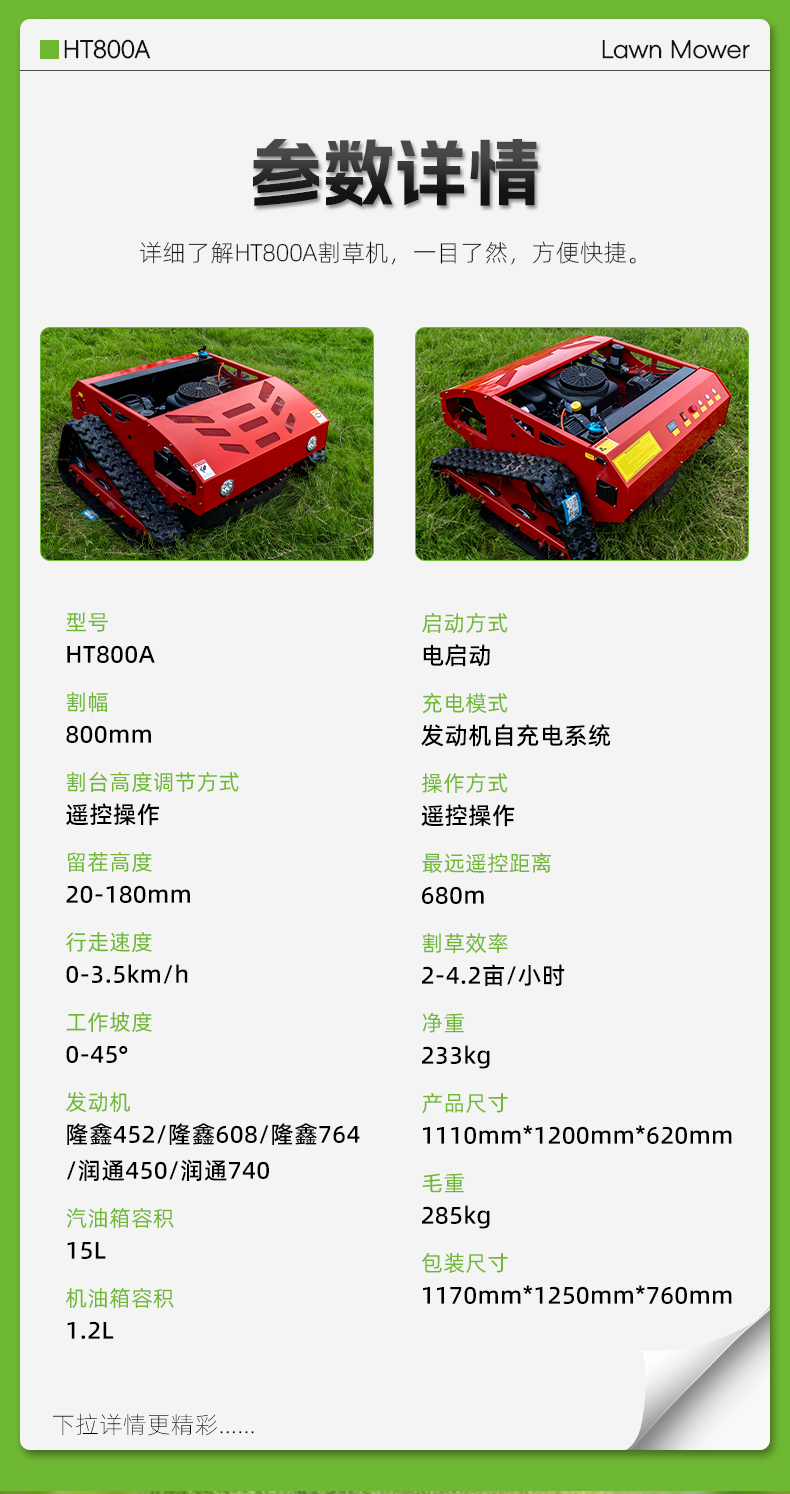 HT800A遙控割草機(jī)680m遠(yuǎn)距遙控,割草效率可達(dá)4.2畝/小時(shí)