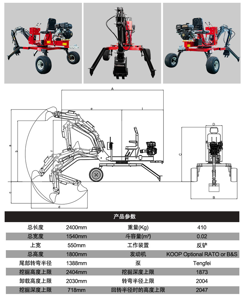 | 挖掘高度上限 | 2404mm | 挖掘深度上限 | 1873 |