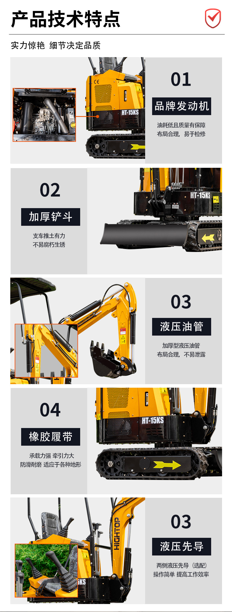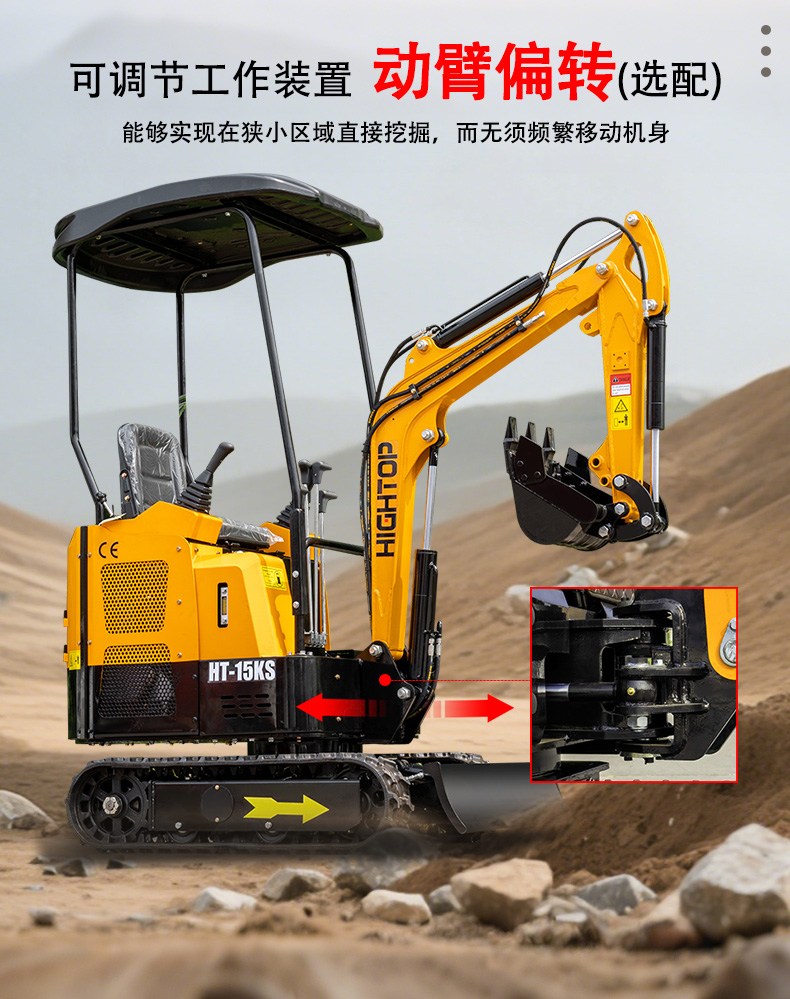 主要零部件選用可靠產(chǎn)品,發(fā)動(dòng)機(jī)為科普 KD2V80,主閥為騰飛,為整機(jī)的穩(wěn)定運(yùn)行提供了有力保障。無(wú)論是小型工程施工、庭院改造還是農(nóng)業(yè)作業(yè),HT15KS 微型挖掘機(jī)都能憑借其靈活高效的特點(diǎn),成為得力助手。