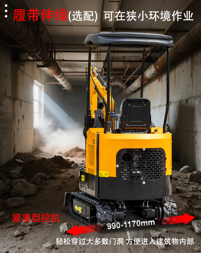 在整機(jī)尺寸方面,它運(yùn)輸長(zhǎng)度僅 2270mm,總寬度 1000mm,上部寬度 940mm,總高度(駕駛室頂)2290mm,這樣緊湊的身形使其能輕松穿梭于狹窄場(chǎng)地。標(biāo)準(zhǔn)履帶板寬度 180mm,軌距 820mm,履帶接地長(zhǎng)度 890mm,履帶長(zhǎng)度 1235mm,配合 30 度的爬坡能力,確保在多種地形都能穩(wěn)定行駛。推土鏟離地高度 95mm,推挖掘深度 220mm,尾部回轉(zhuǎn)半徑 870mm,進(jìn)一步提升了其在受限空間內(nèi)的操作靈活性。